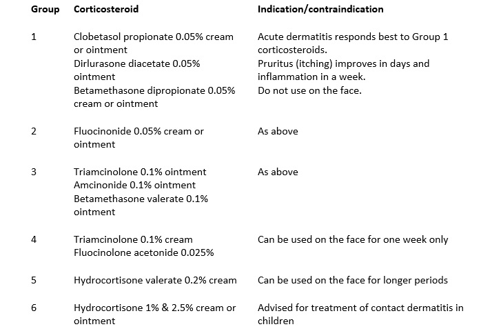 Table 1: Classification of the Potency of Topical Corticosteroid Preparations
