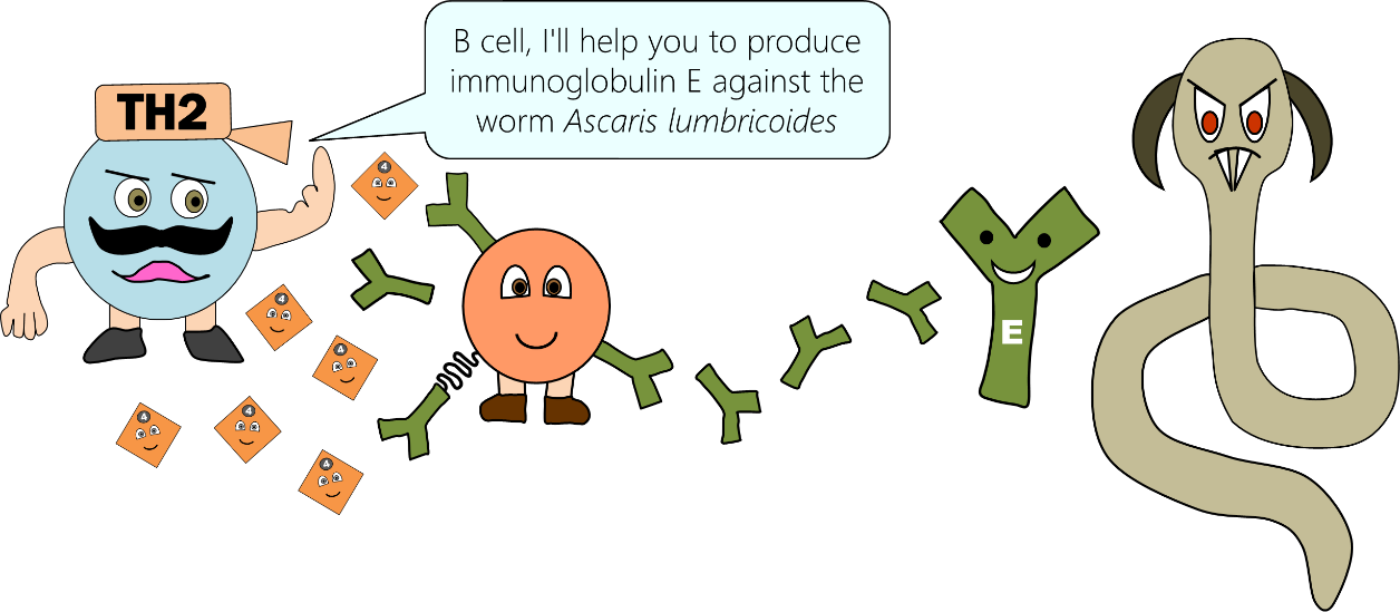 - The main sources of IL-4 are TH2 lymphocytes, type 2 innate lymphoid cells (ILC2), basophils, mast cells and eosinophils. Physiologically, IL-4 strengthens our TH2 army against helminths and other extracellular parasites by inducing development of TH2 cells and secretion of IgE from B lymphocytes.