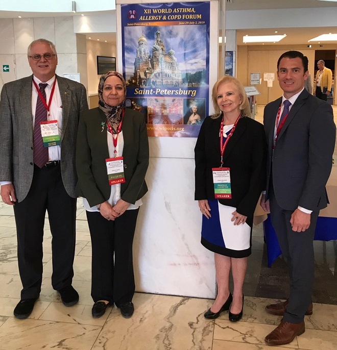 The faculty for the training school, co-sponsored by the World Allergy Organization and the American College of Allergy, Asthma, and Immunology, were Dr. Dana Wallace (US), Dr. Bryan Martin (US), Dr. David Stukus (US), and Prof Zeinab Awad El-Sayed (Egypt). Moderators were Congress President, Prof Revaz Sepiashvili (Russia) and Congress Organizer Prof Manana Chikhladze (Georgia), Congress organizer. Dr. Wallace’s husband, Dr. Ralph Cash, was the unofficial WATS and congress photographer. Drs. Wallace, Martin, and Stukus as WATS faculty as well as Dr. Sami Bahna (US), a congress planner and speaker, were invited to be part of the WIPO opening ceremony. All WATS faculty participated in the XII World Asthma, Allergy & COPD Forum, as lecturers and moderators, and were honored at the Presidential Dinner.